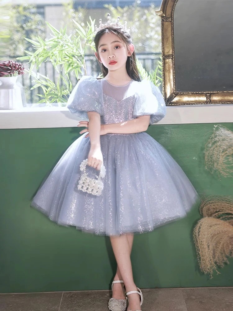 【3日出荷】新作 シンプル バブルスリーブ 女の子 パーティードレス110/120/130/140/150/160