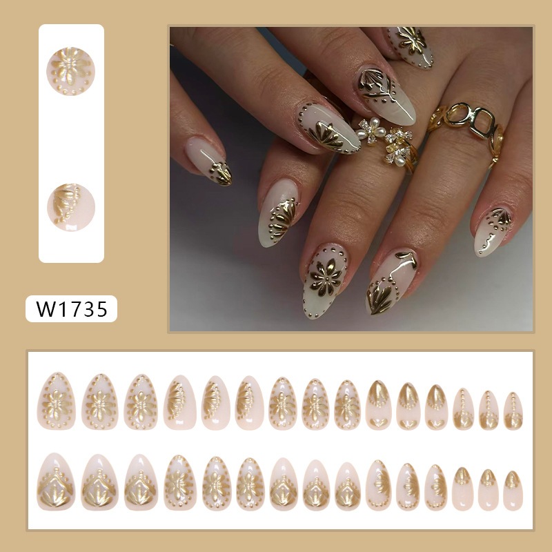 爪を装着する爪を装着する爪を装着する立体的な金色の透かし彫りの取り外し可能な爪パッチ30枚