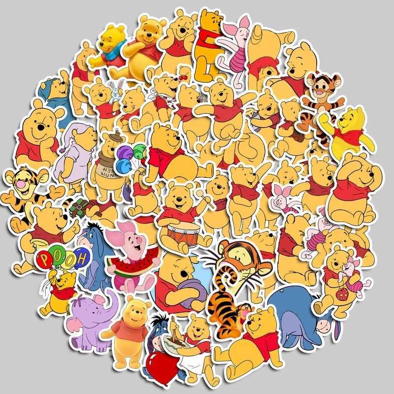くまのプーさんのキャラクタースーツケース50枚シールノート防水手帳デコレーションシールです