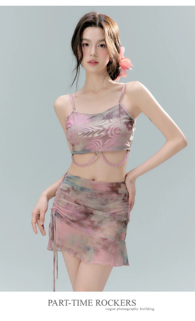 【大人気水着】韓国 ファッション 水着 レディース 高級感 4点セット 絞り染め 長袖カバーアップ付き スリム効果 トレンド 水着 水着