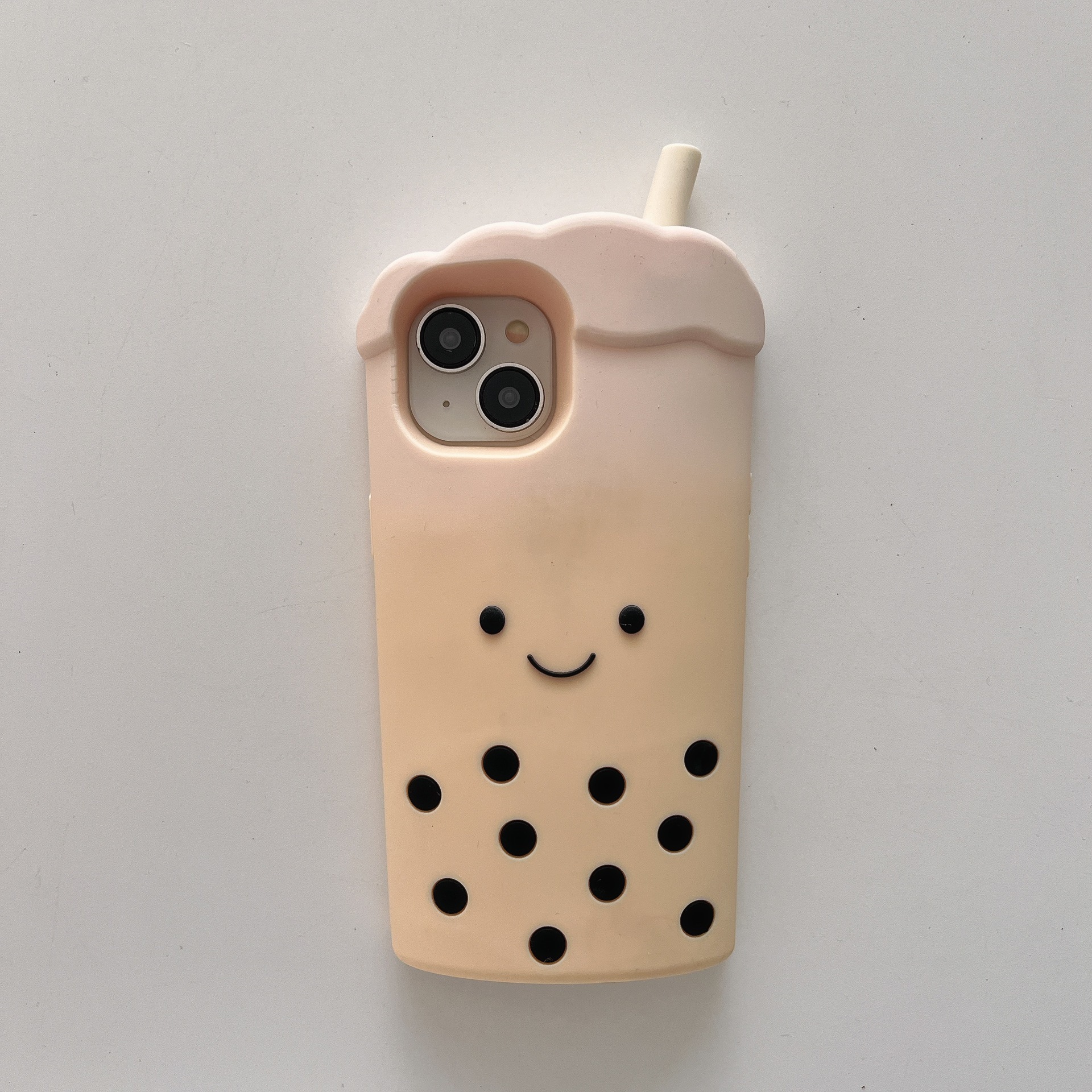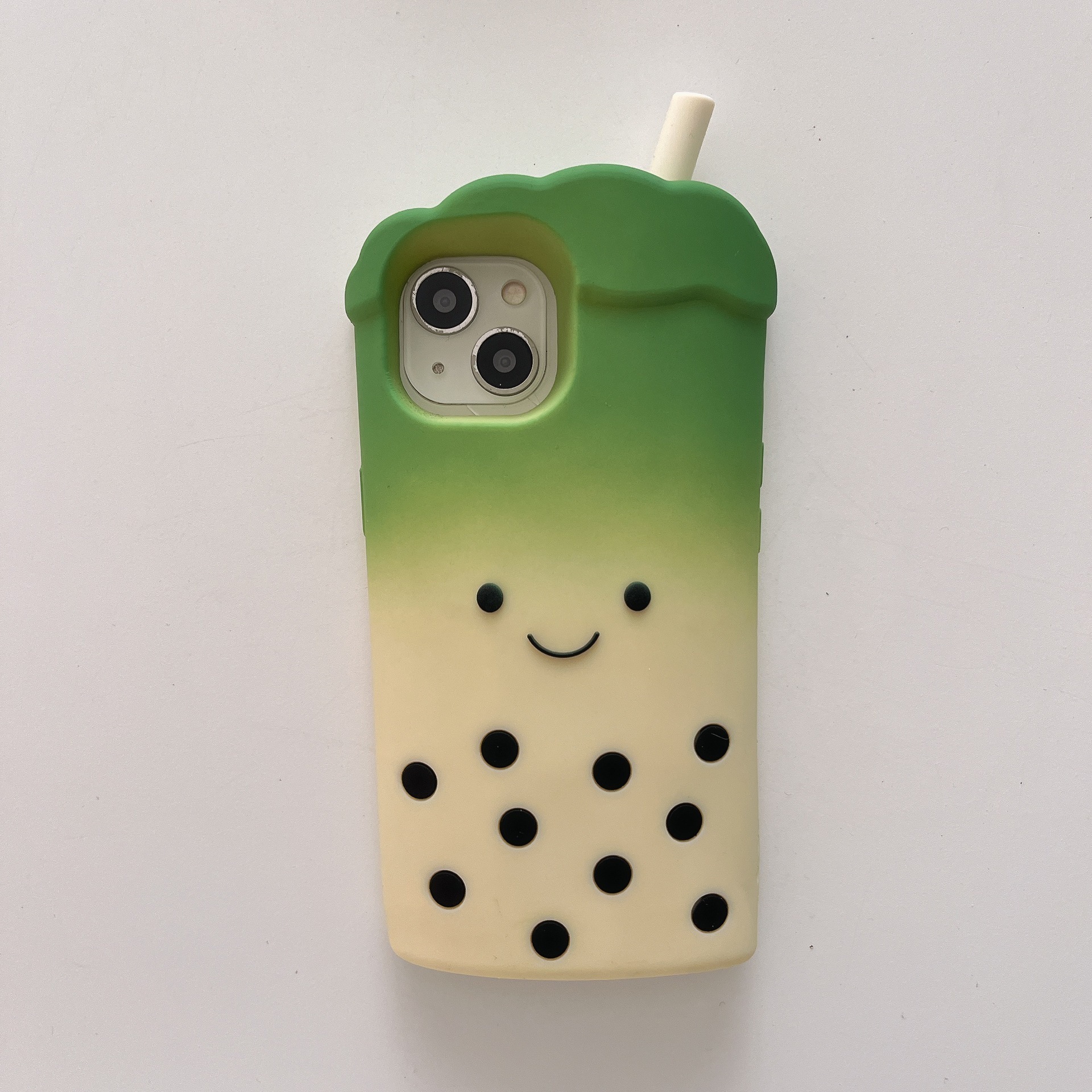 創意的笑顔抹茶オリジナルタピオカミルクティーiPhone 16アップル15適用13/14 pro max携帯ケース