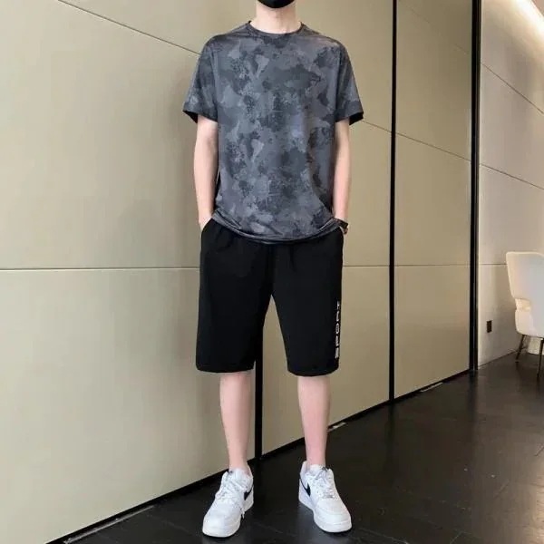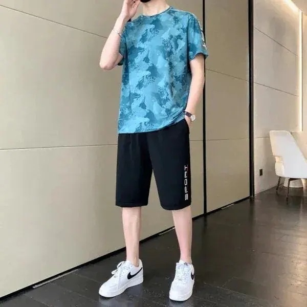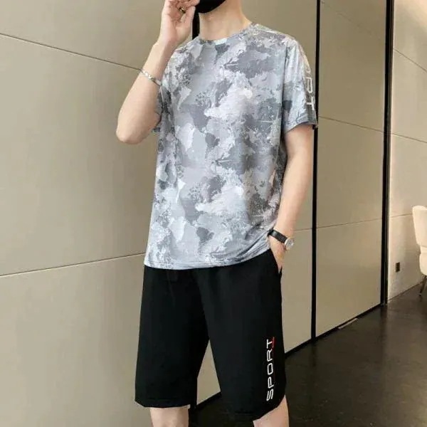 感涼しいパジャマ半袖Tシャツ迷彩柄短パントップス部屋着用リゾートスポーツ父のセットアップメンズウェア上下接触冷感涼しいパジャマ半袖Tシャツ迷彩柄短パントップス部屋着用リゾートスポーツ父の