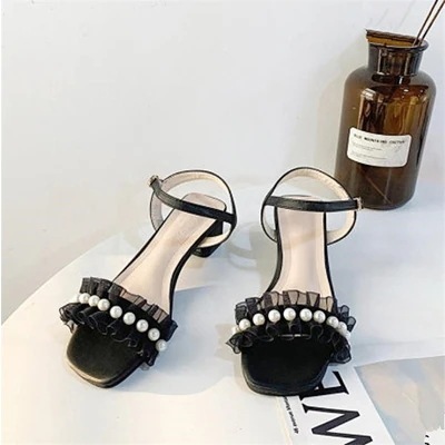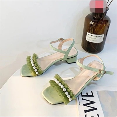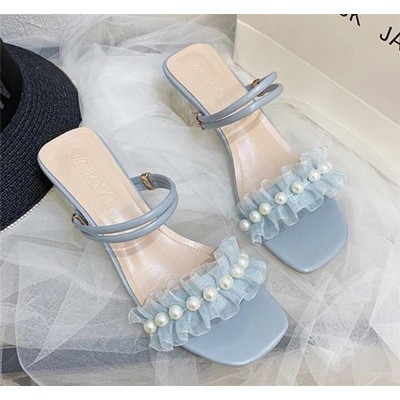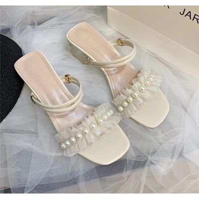 気質 2 WAY sweet系 スリッパ サンダル 学生 パール 百掛け 太いヒール この節に大スタイル 小さい新鮮な ファッション 滑り止め