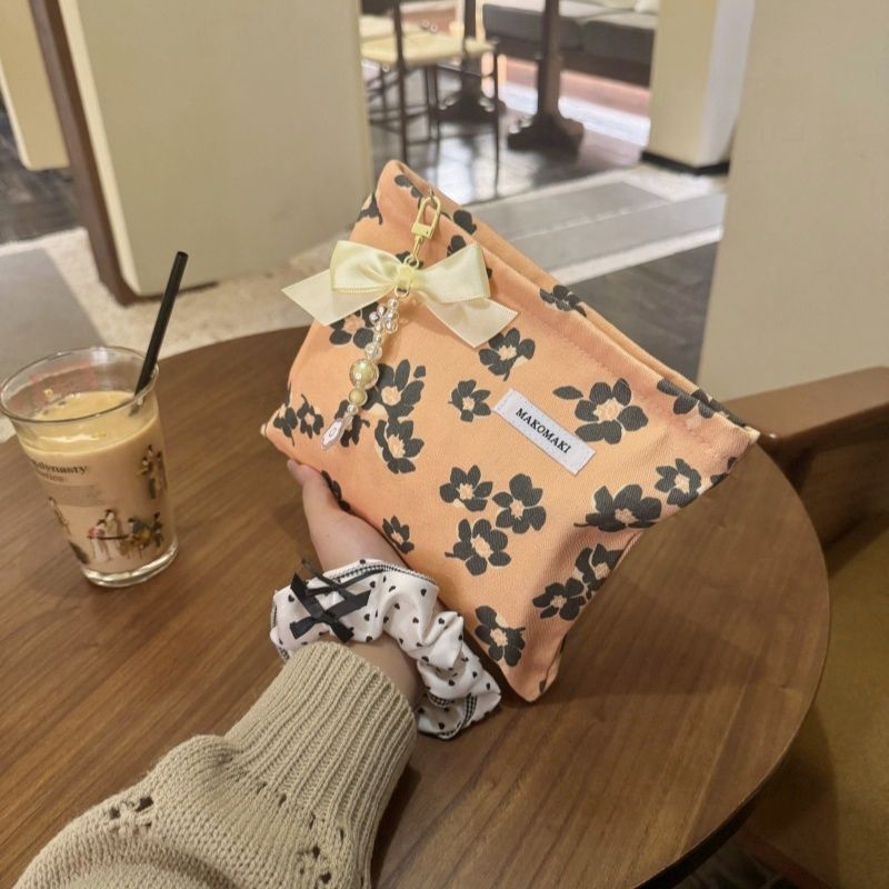 ポーチビタミンカラーオレンジ 新作プリント インスタ映えキャンバスポーチ かわいい大容量旅行用洗面バッグ 化粧ポーチ-大容量 コスメポーチ 大容量 ポーチ メイクポーチ 韓国 メイクポーチ 持ち運び