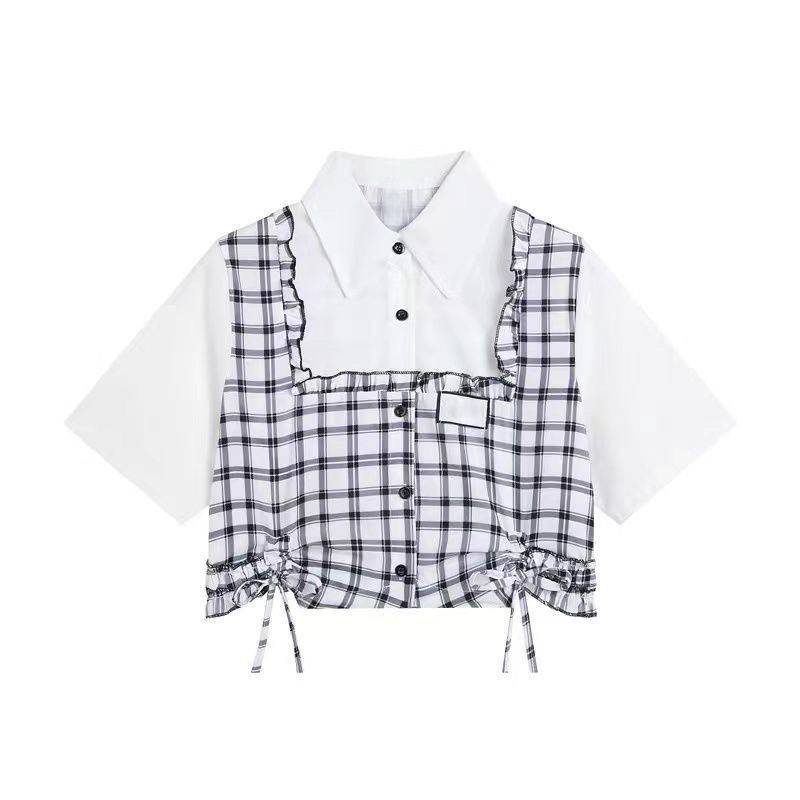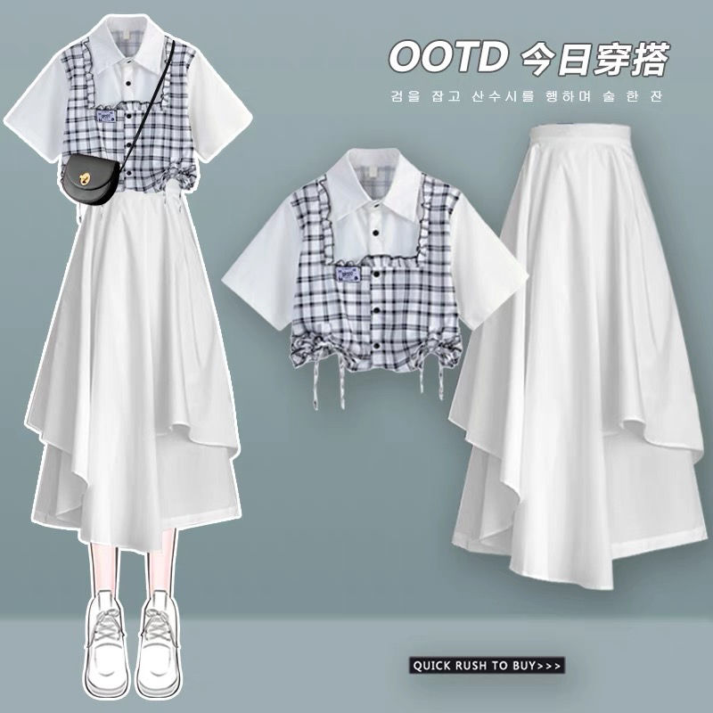 学院風減齢甘さ感シャツスーツ新型夏の女性の不規則な半身スカート2点セット