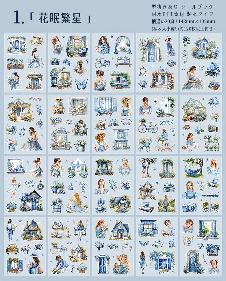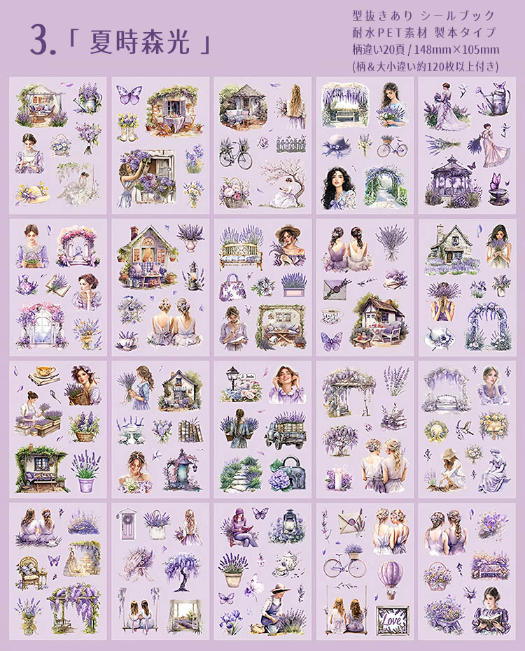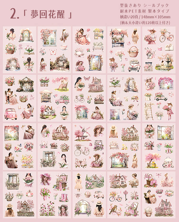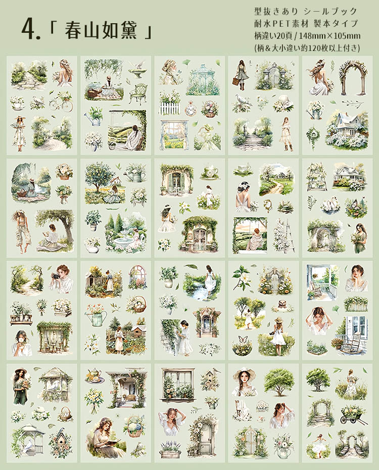 型抜き シールブック 柄違い20頁 ステッカーブック 耐水 レトロ アンティーク 人物 大人 外国 女性 女の子 建物 小屋 建築 扉 窓 背景 ロマンティック コラージュ素材 sztz-20-239