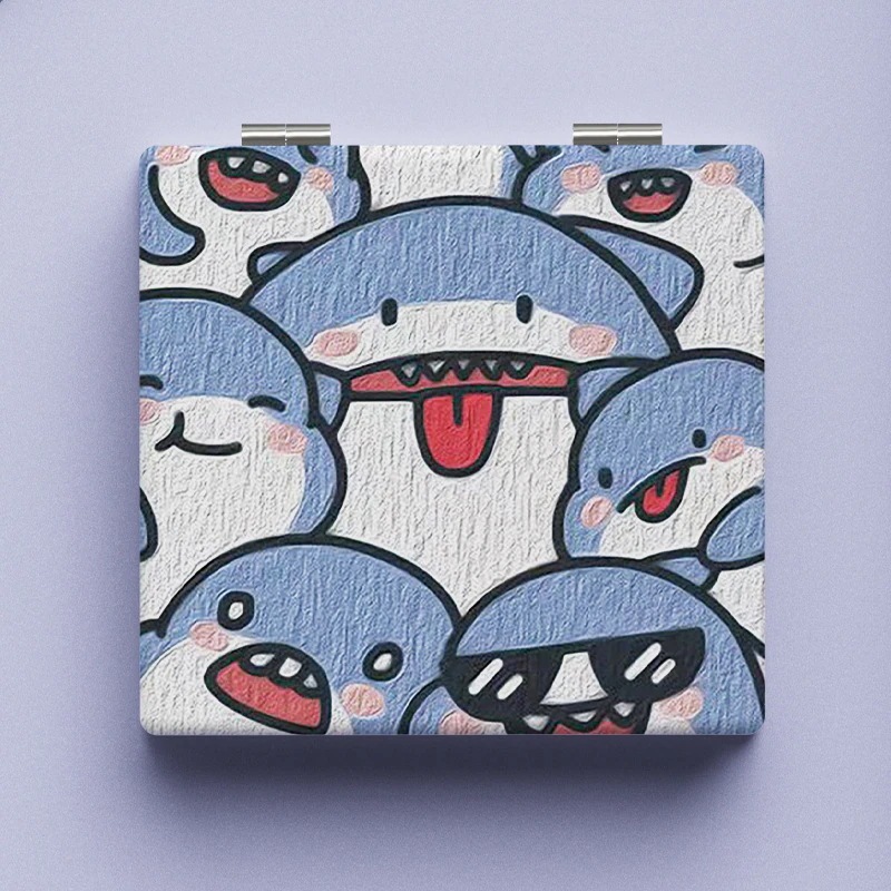 携帯用ミラーの新しい小さい鮫の携帯用化粧の両面鏡の折りたたみミラーの方法高精細の美ミラー