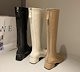 「期間限定セール」ジョッキーブーツ ロングブーツ レディース 春夏 ブーツ 美脚 膝丈 4cmヒール 大きいサイズ シューズ 靴 ローヒール 太ヒール シンプル ブラック オフホワイト ベージュ