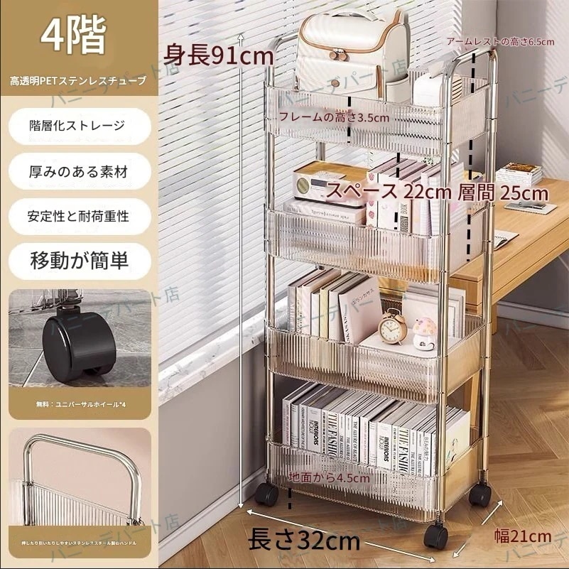 キッチンワゴン 収納ワゴン 隙間収納 キャスター付き キッチンラック ペットボトルラック 冷蔵庫横 洗面所 隙間ラック 3段 4段 スリムワゴン 細い棚 調味料棚 ABS材質 組み立て簡単 小物 台