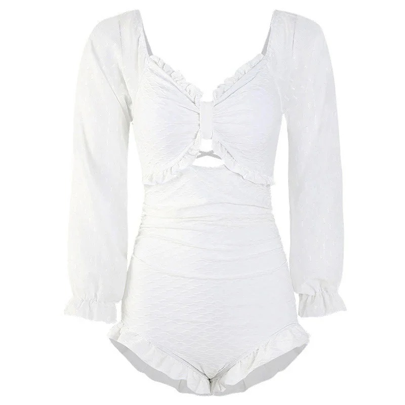 2025 春夏 露出を控えた ファッション ビキニ 韓国スタイルアップ 海プール可愛い海水浴花 フレンチシック大タンキニセパレート人女子水着付き レディース スリーブ
