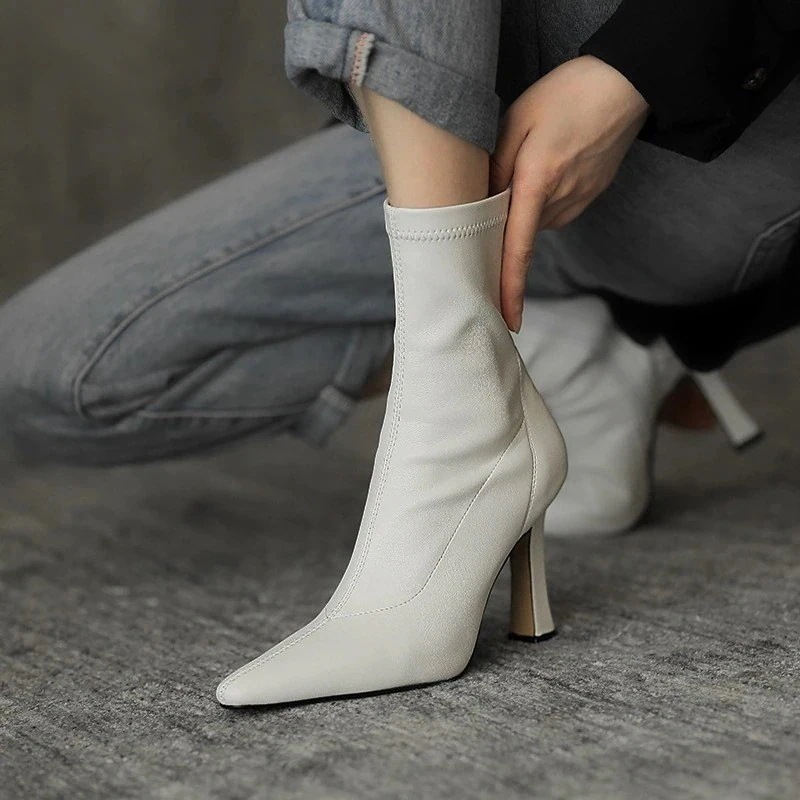 ヒールパンプス ヒ一ルパンプス 韓国ファッション サイドジッパー ハイヒール ブーツ レディース chic気質 ストレッチ ショートブーツ エレガント スエード ショートブーツ