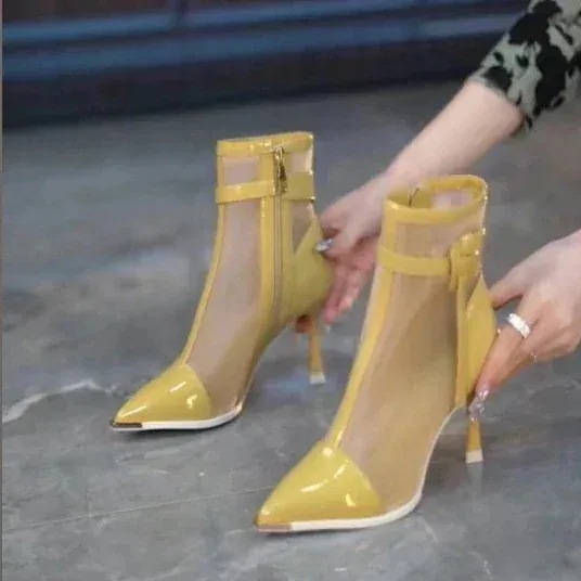 【3日以内出荷】厚底シューズ ヒールパンプススニーカーシューズブーツ厚底 2025春夏新作ハイヒールメッシュ涼しげ靴トップハイヒールエナメルメッシュ靴透かしサンダル ショートブーツ レディース 韓国フ