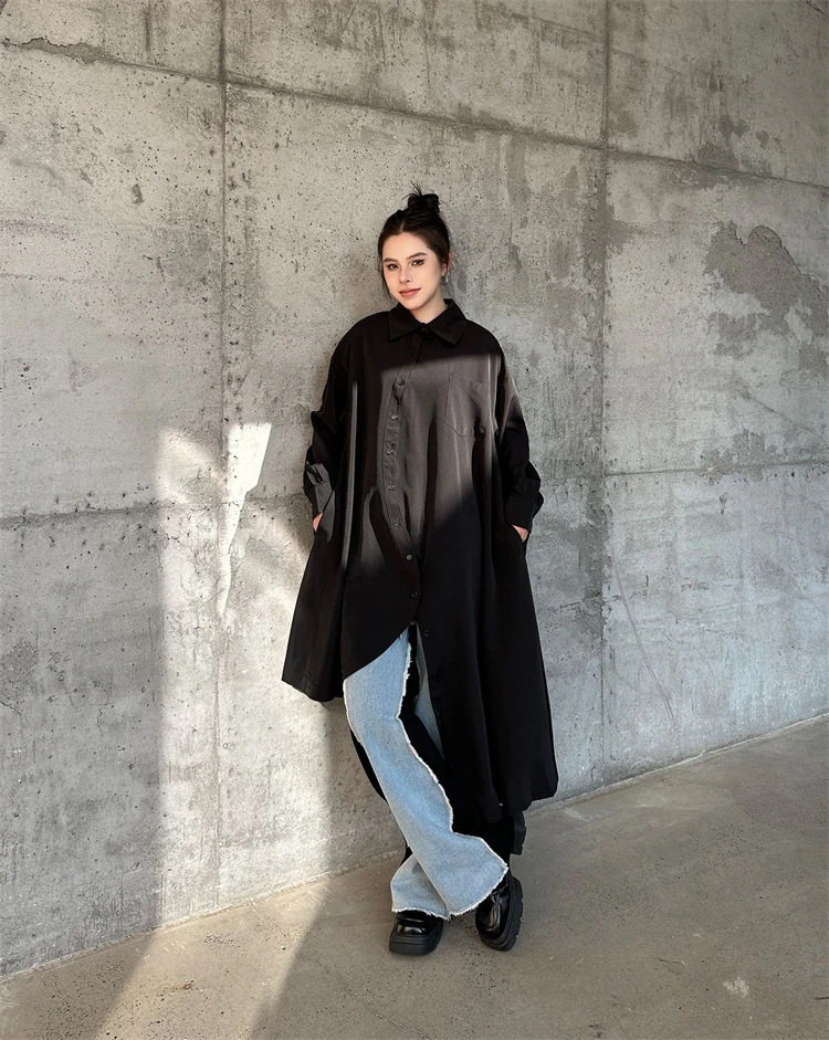 早い者勝ち カジュアル ワンピース 2025春 イレギュラーな裾 ポロネック ロングスカート シャツワンピース ゆったりする 個性 スリム