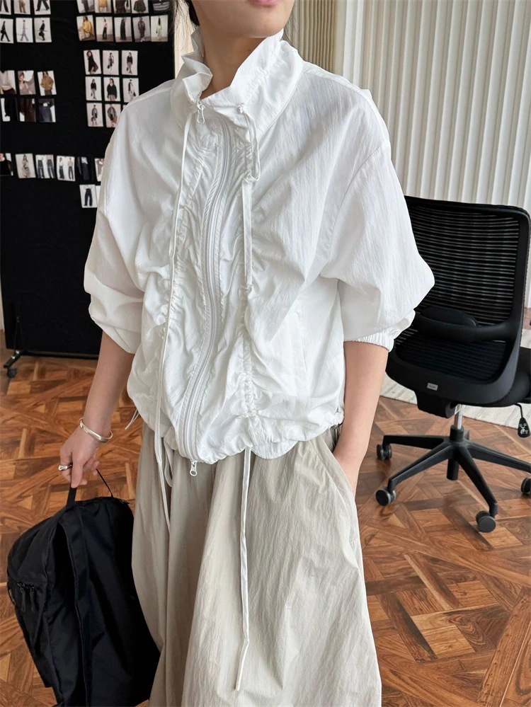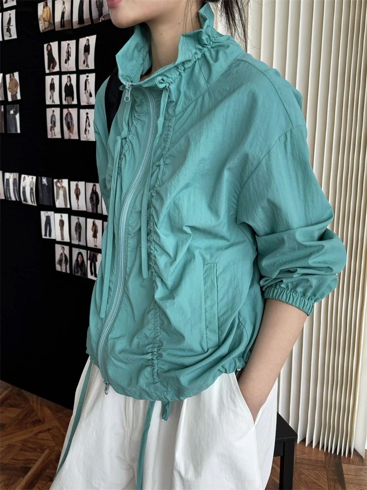 激安セール レディース サイドドローストリング プリーツデザイン UVカット 薄手軽量 通気性ジャケット アウトドア 通勤対応 春夏アウター