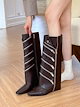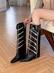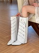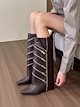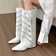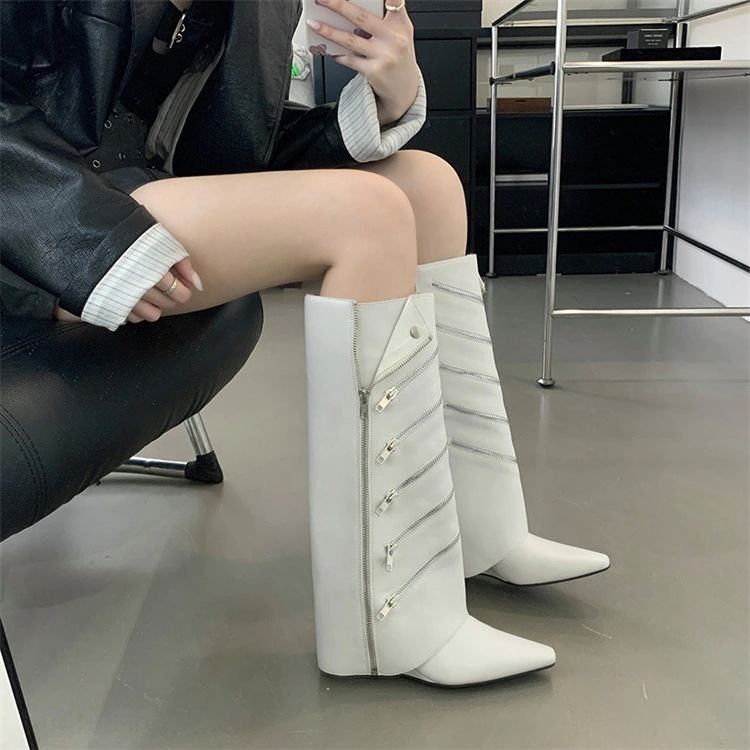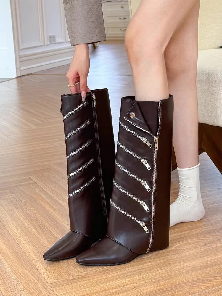 通勤する ギャル ロングブーツ 高いブーツ トレンド 大人気 羊皮版 ポインテッドトゥ ファスナー飾り おしゃれな ズボンのブーツ