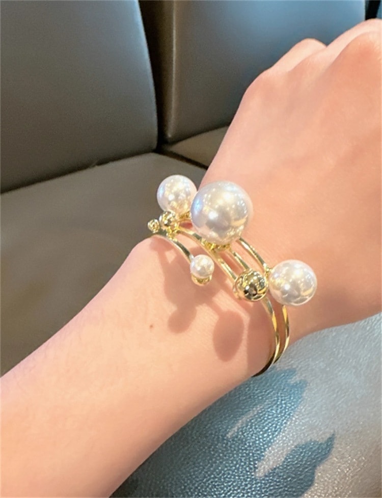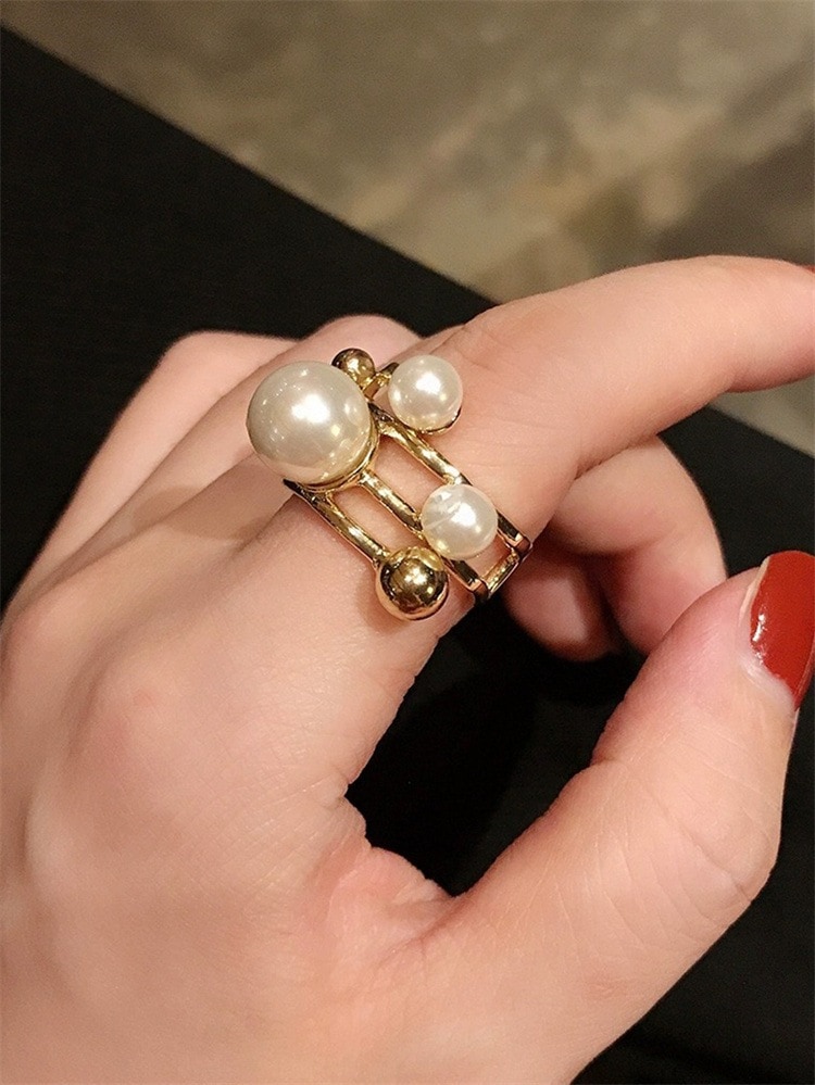 フィト早い者勝ち シンプルデザイン メタル真珠指輪&ブレスレット レトロ多層加工 2点アクセサリーセット