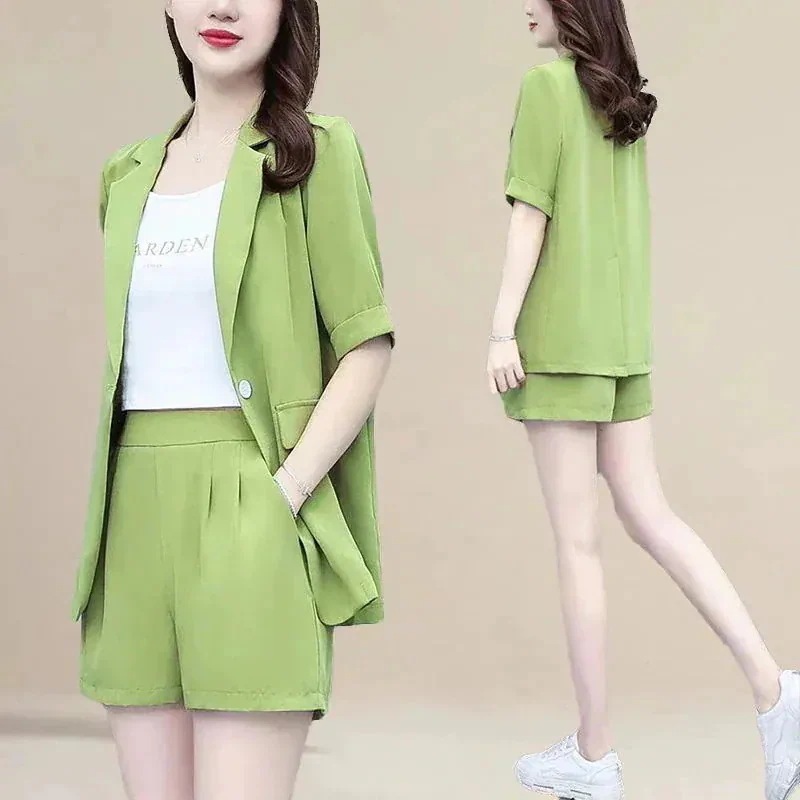 涼しく楽ちんセットアップ レディース 夏 スーツ セットアップ 2026 韓国 半袖 ブレザーレディース薄手カジュアルブレザーパンツ2枚セット ルームウェア セットアップ スウェット上下セット スーツ