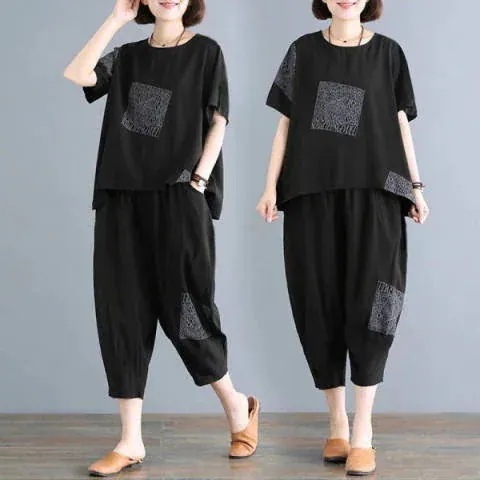 涼しく楽ちんセットアップ レディース 夏 韓国 ゆったりとしたファッションの半袖長ズボンスポーツウェア2着 ルームウェア セットアップ スウェット上下セット スーツ