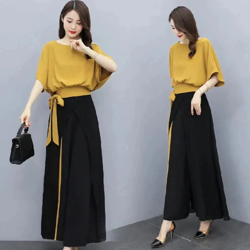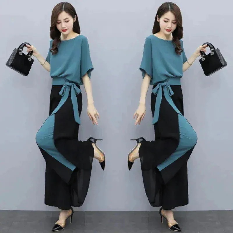 涼しく楽ちんセットアップ レディース 夏 韓国 半袖 ワイドパンツスーツ 2026夏の新気質リボン2点セット女性 ルームウェア セットアップ スウェット上下セット スーツ