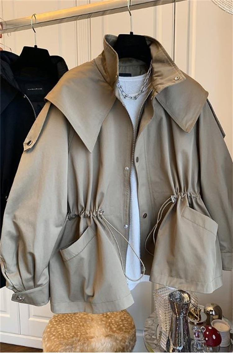 早い者勝ち 受け取って腰 ワークコート スリム カジュアル 快適である 紐を引く コート 2025春秋 短いスタイル トレンチコート