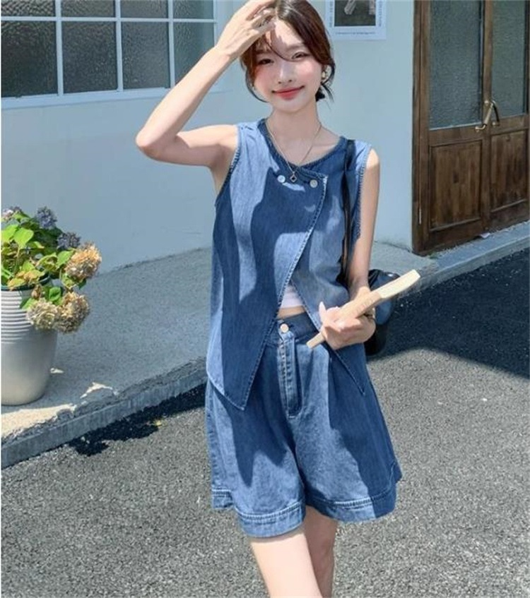 早い者勝ち 2025SS新作 モード系デニムコーデ 薄手ベスト&ショートパンツ ノースリーブ2点セット