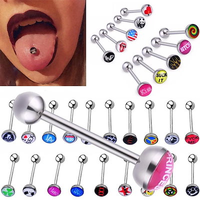 訳あり アウトレット 14 ボディピアス 舌ピアス セミロングストレートバーベル 14ゲージ 1個