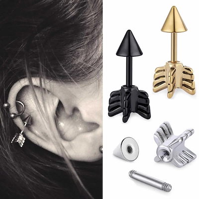 ボディピアス 弓矢 ストレートバーベル ステンレス ゲージ14 リアル 3デザイン 立体 黒金銀色 ブラック ゴールド シルバー 耳 軟骨 ヘリックス ユニーク アロー 308