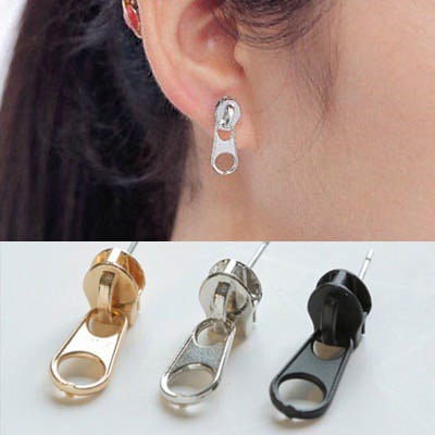 ファスナーピアス 1ペア 両耳 ジッパー チャック ユニーク 金色 黒色 銀色 揺れる 動く 3
