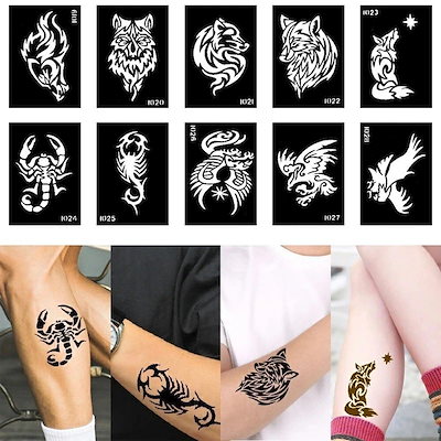 TRIBALステンシルシートステッカー 動物 トライバル 和柄 ヘナタトゥー シール 型紙 顔 腕 刺青 入れ墨