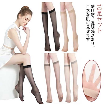 ショートストッキング 10足セット ひざ下 紫外線対策 冷房 ストッキング 薄手 ひんやり 快適 スポーツ ゴルフ 伝線しにくい サポート ハイソックス 靴下 ひざ下ストッキング 肌色 黒 ブラッ