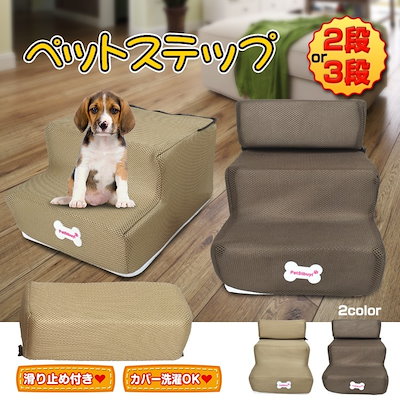 ペットステップ ドッグステップ 2段 3段 階段 昇り降り 昇降 愛犬 犬 通気性 カバー 洗濯可 滑り止め 軽量 pt055