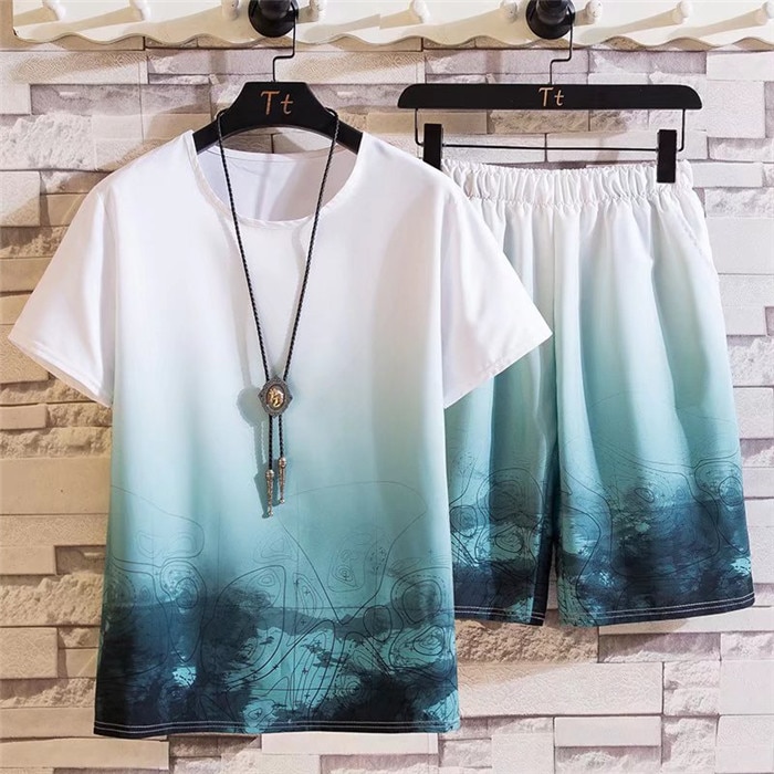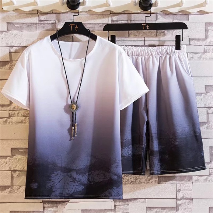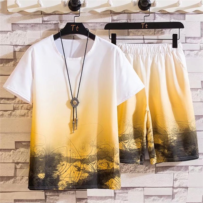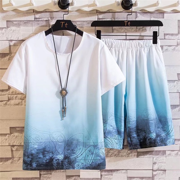 ルームウェア 半袖 運動 スポーツウェア Tシャツ 夏 メンズ ジャージ ハーフパンツ 2点セット メンズ 接触冷感 グラデーション 上下セット セットアップ 通学