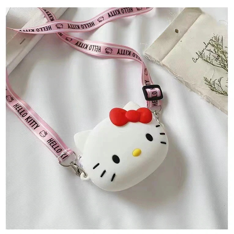サンリオキティちゃんキャラクターシリコンショルダーバッグ 斜めがけ小銭入れコインケースバッグ 柔らかい 財布 多用途 子供用 キッズ小銭入れ