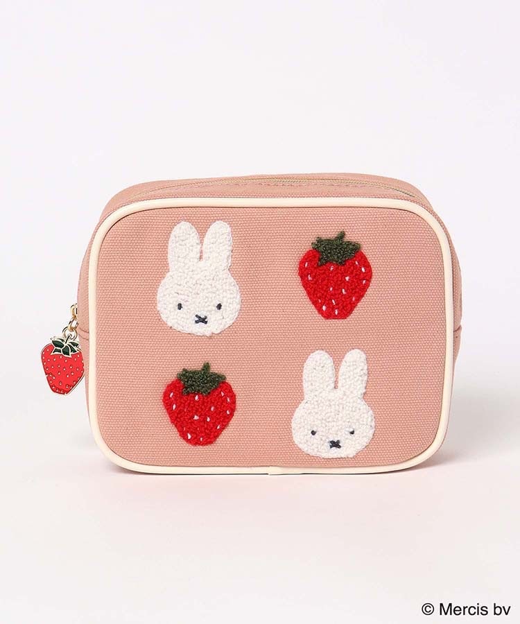 日本ミッフィーいちごキャラクターかわいいピンクのスクエアポーチ携帯刺繍おしゃれなお年玉