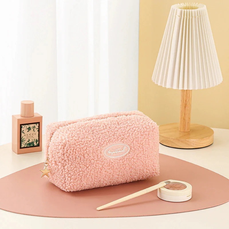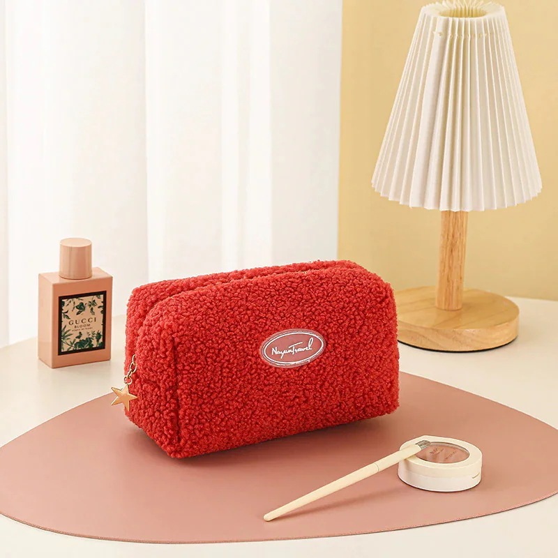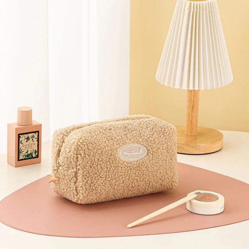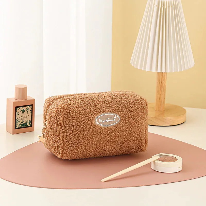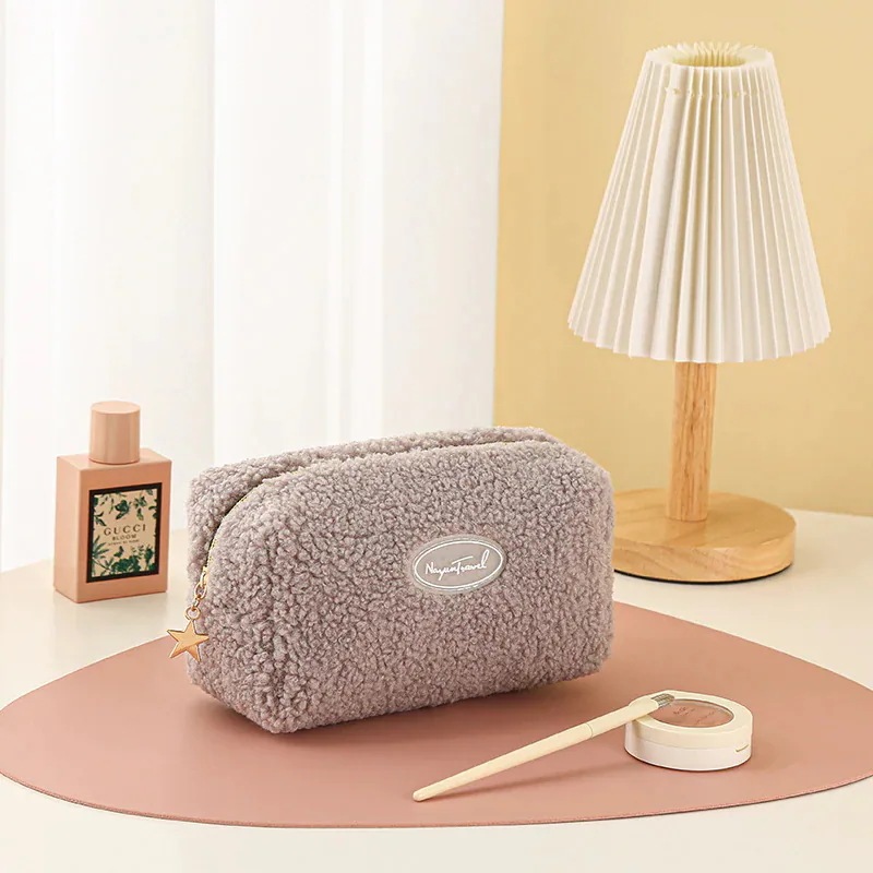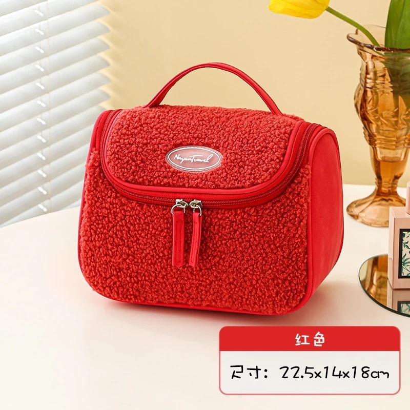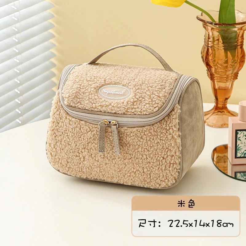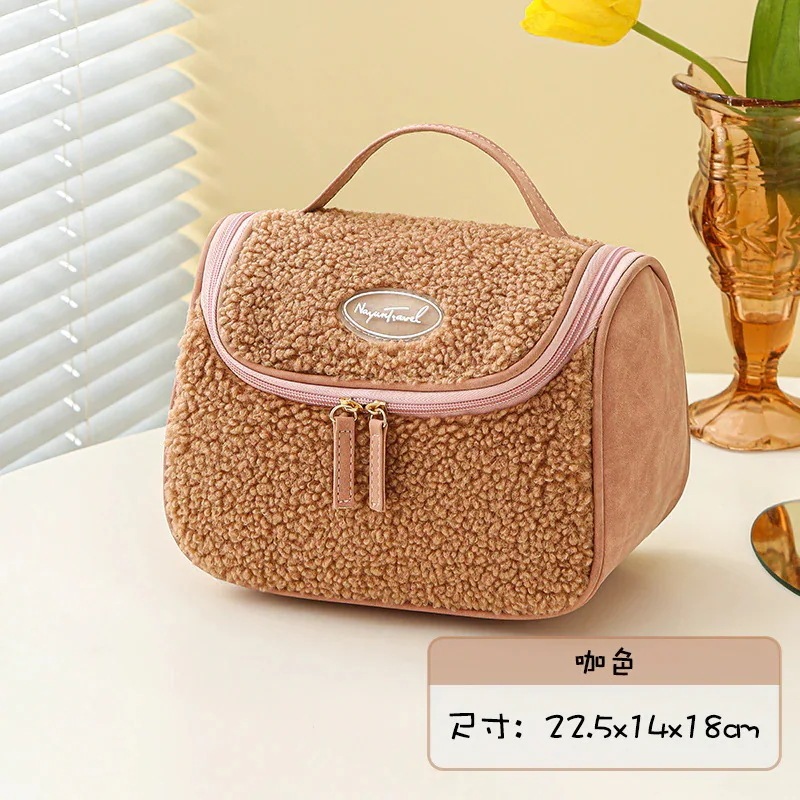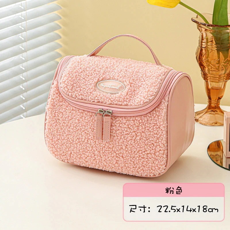 秋冬新作ラムウールコスメバッグ旅行収納バッグ手持ち大容量コスメトイレタリーバッグ