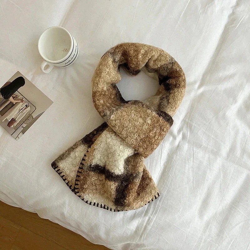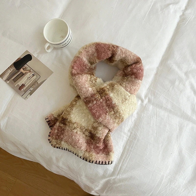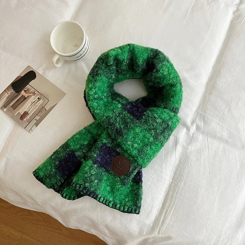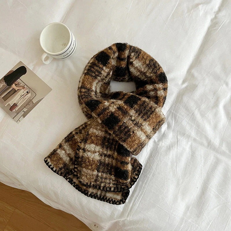 2024 秋冬韓国風 肌に優しい短款イミテーションカシミア レディースチェック柄小スカーフ