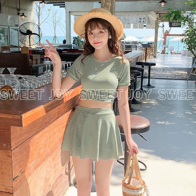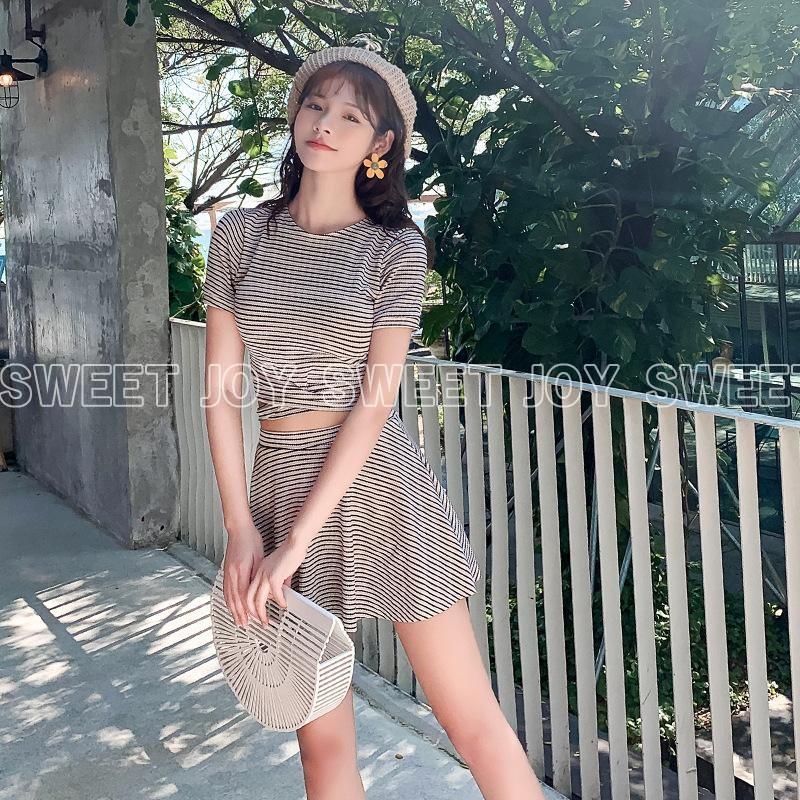 水着 レディース ビキニ 体型カバー 半袖 トップス スカート 2点セット セパレート 新作 セール 可愛い おしゃれ 大人 洋服みたい 流行 ボーダー リボン フレアスカート
