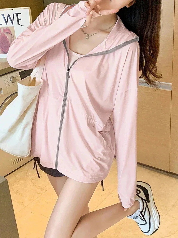 uvカットパーカーアイスシルク接触冷感日焼け止めブラウス夏紫外線対策通気性おしゃれ空調服アウターカーディガンスリムコート