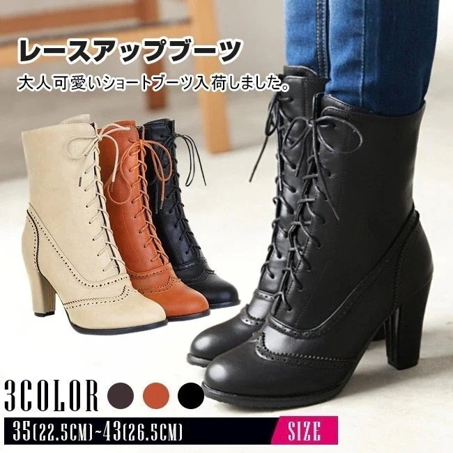 ショートブーツ レディース 太ヒール ショート丈 レースアップ 編み上げブーツ 袴用 カジュアル 歩