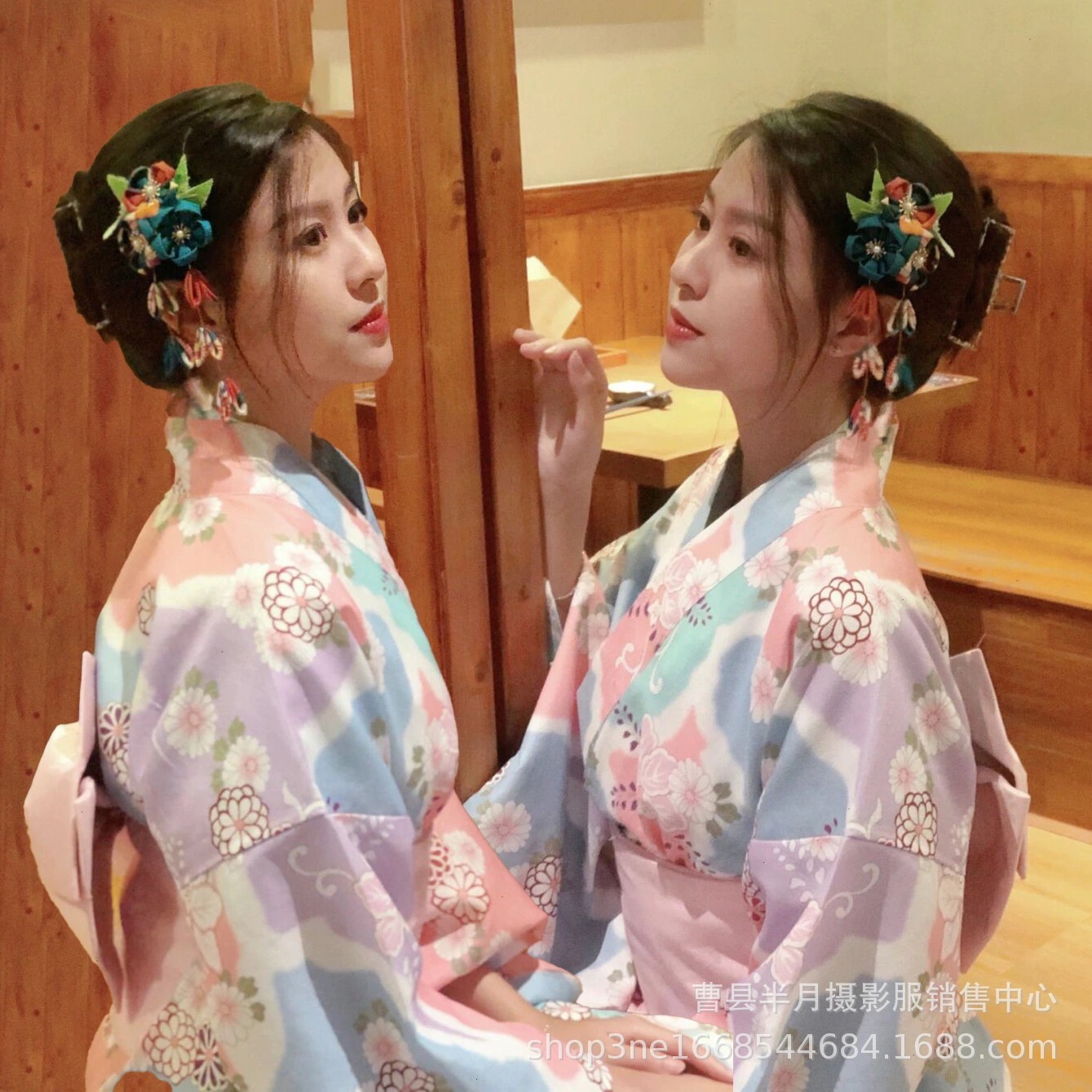 浴衣 日本伝統着物浴衣 着物レディース写真服フォーマル伝統的なレトロスタイル改良ドレス日本の椿着物