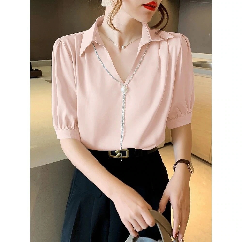 ブラウス ブラウス韓国ファッションシアーシャツ tシャツ ギフ シフォン 楽ちんセットアップ パール カ一ディガンTシャツシアーシャツ 涼しく Tシャツ 日焼け止め 半袖 t シフォンブラウス【上品】