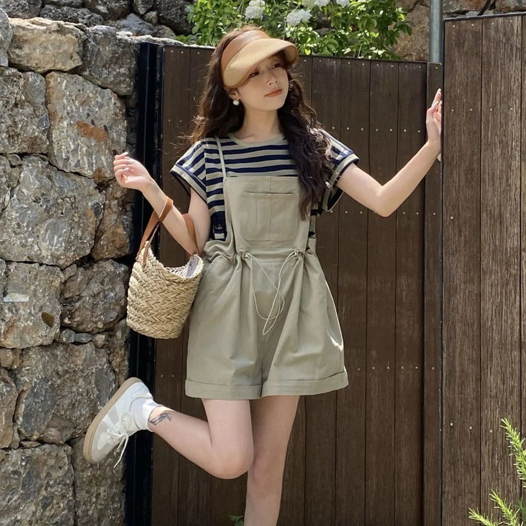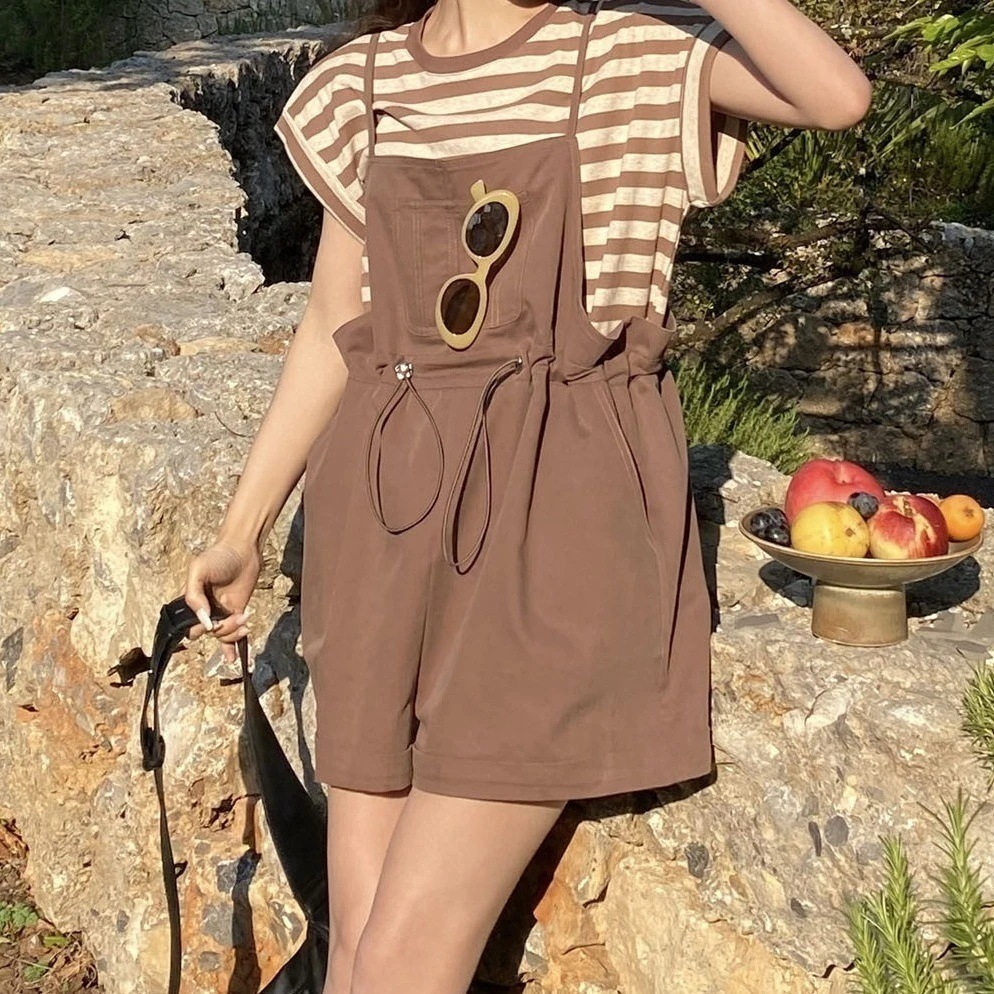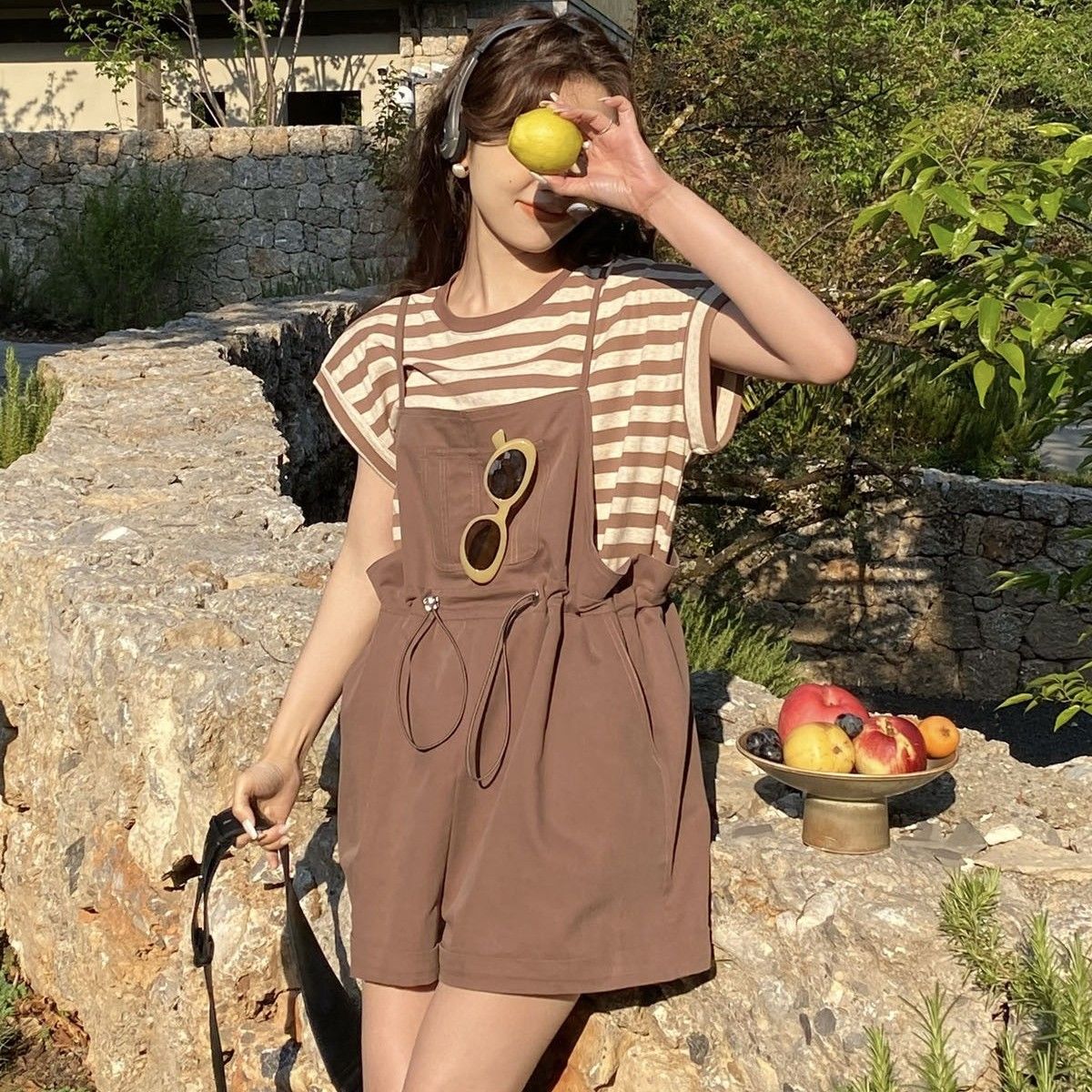 カジュアル セットアップ 百掛け パンツ オーバーオールハーフパン ゆったり レディース ハーフパン ショートパンツ 短パン コーデ完成!サロペット 着痩せ 夏服