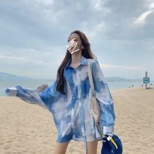 日焼け止め tシャツ ブラウス韓国ファッションシアーシャツ 【本日限定】2枚でさらに安く 絞り染 シャツ t ブラウス ブラウス カ一ディガンTシャツシアーシャツ シアーシャツ シフォンブラウス即納