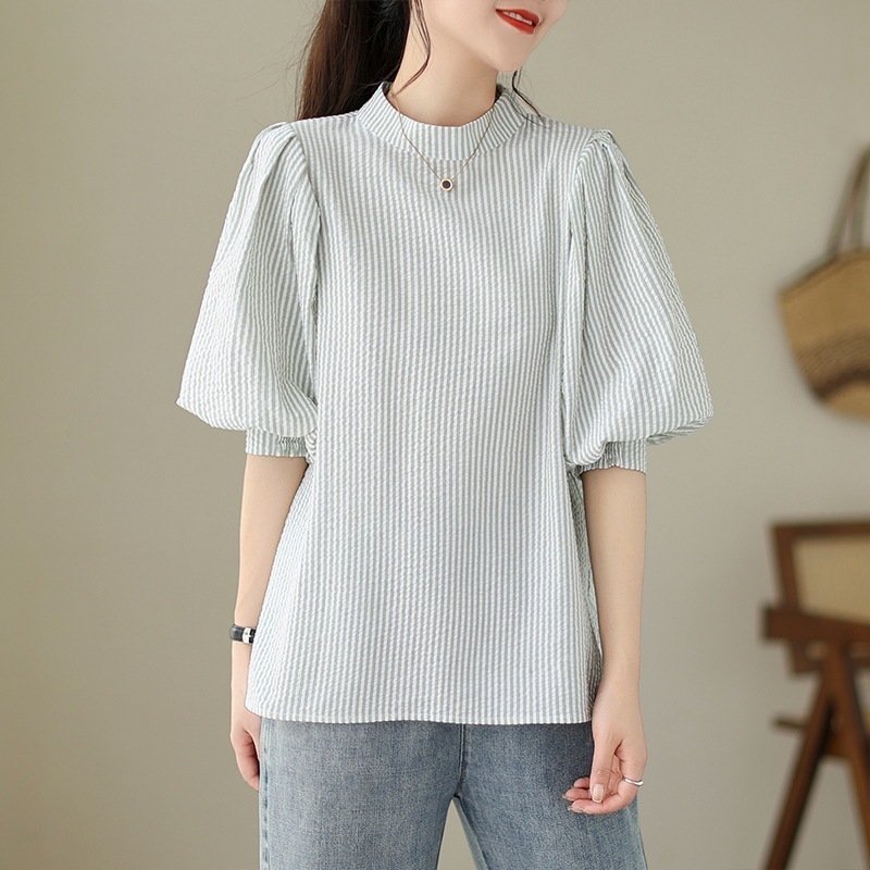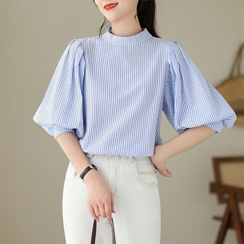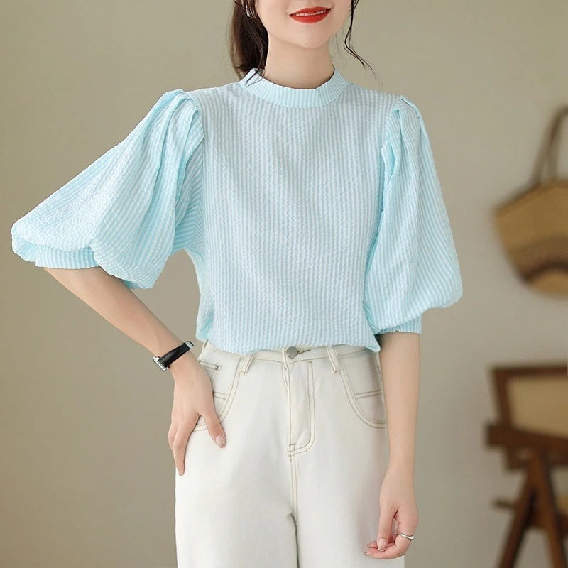 新作 カ一ディガン無料!新作 Tシャツ t バブル袖 夏 tシャツ ブラウス韓国ファッションシアーシャツ Tシャツ 半袖 ラン ブラウス ストライプシャツ シアーシャツ ティーシャツ シフォンブラウス