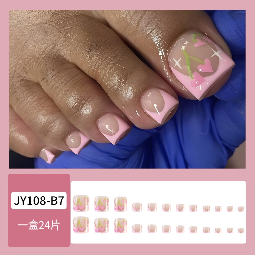 【速達!】かわいい足にネイルフレンチハートのペディキュア完成品足爪パッチ高級感