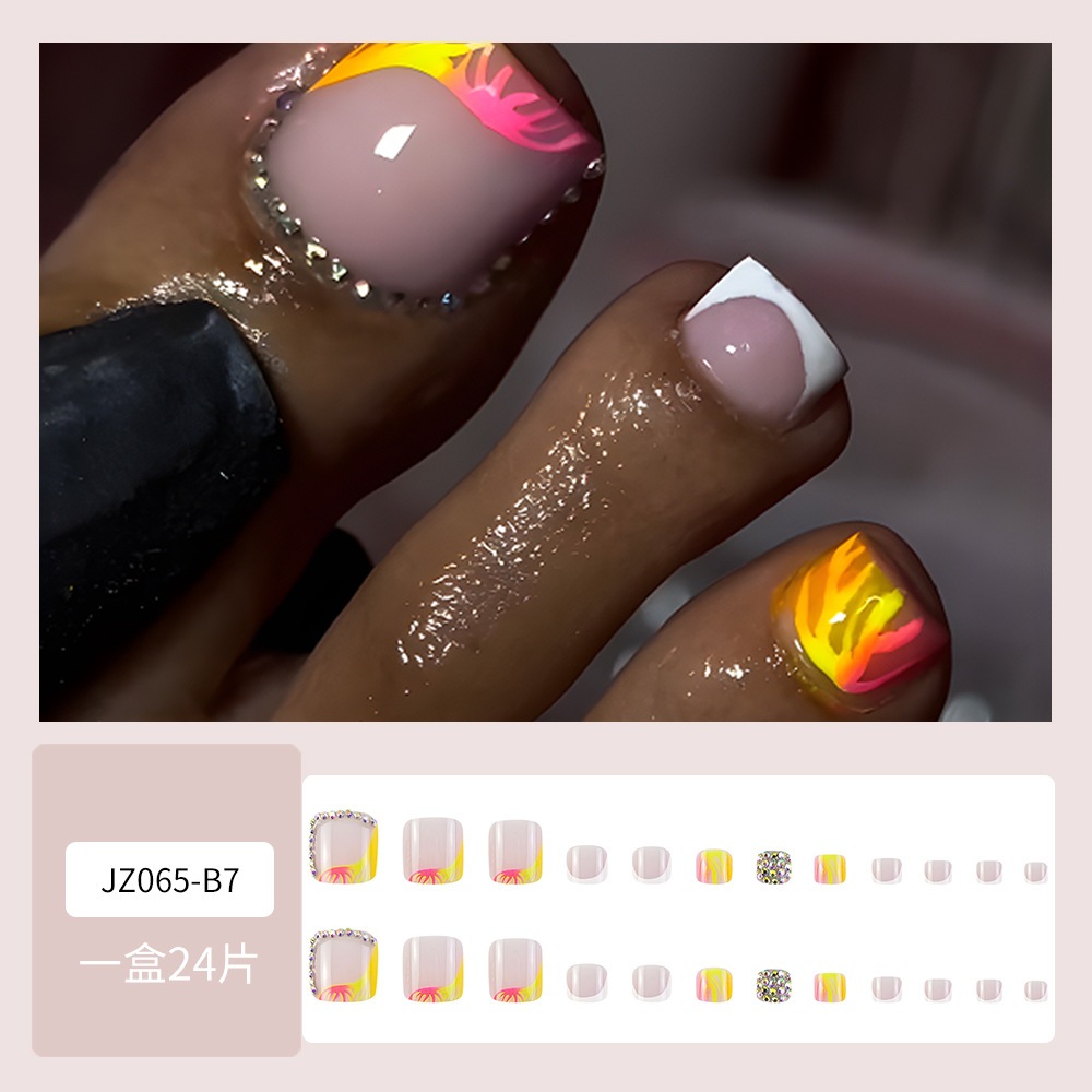 【速達!】オレンジイエローのグラデーションラインを着用したネイルチップホワイトサイドフレンチスタッズドリル足爪チップ