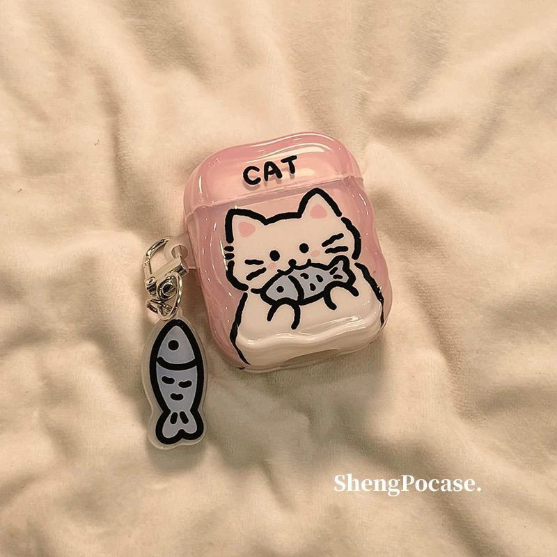 ペアで使える猫が魚をゲットするめっちゃ可愛いAirPodsケースチャーム付きでカップルに大人気 airpods pro ケース airpods ケース airpods4ケース AIRPDSケー