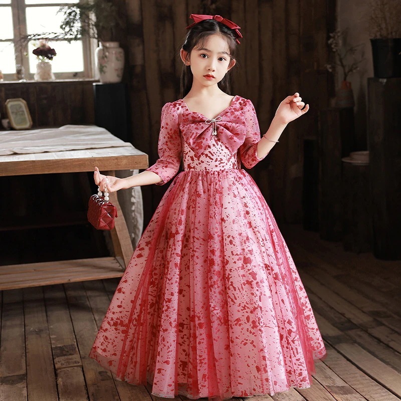 【3日出荷】新作 女の子ドレス 赤 ピアノ演奏 ステージ用110/120/130/140/150/160