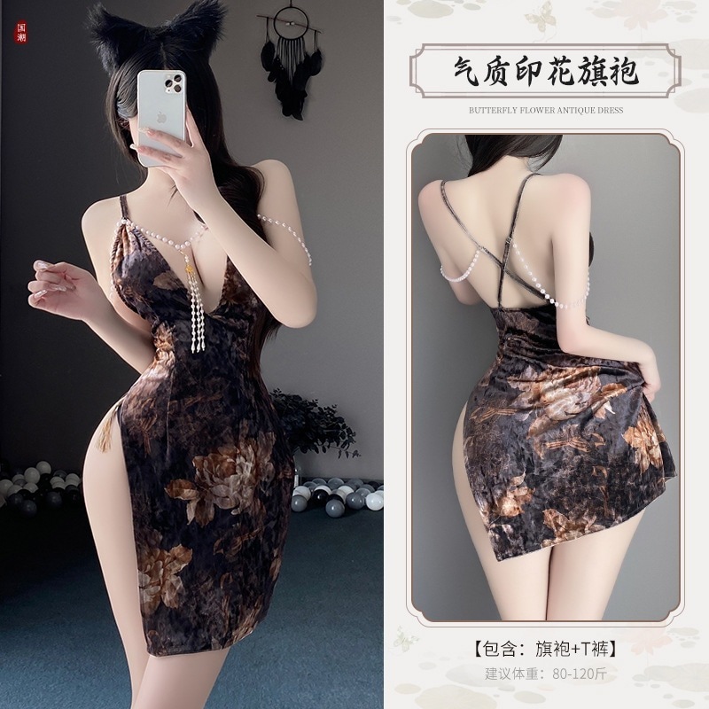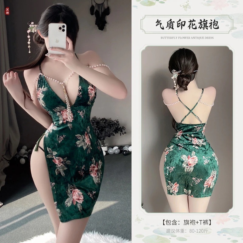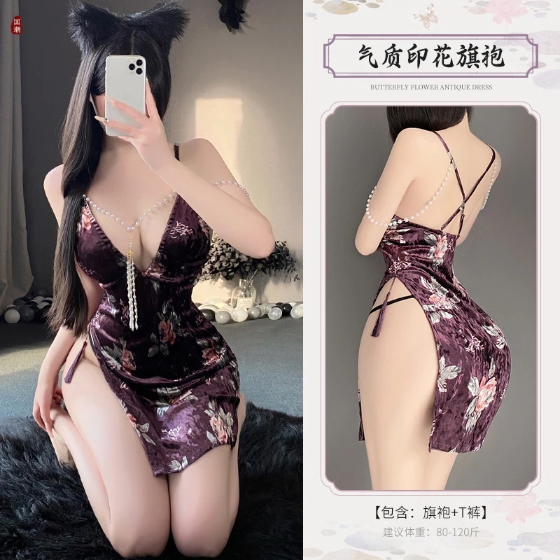 【急速出荷】ランジェリー 情趣下着セクシーハイウエスト開叉バッグヒップ民国珠串セレブチャイナドレススリーパー エロいコスプレ セクシー