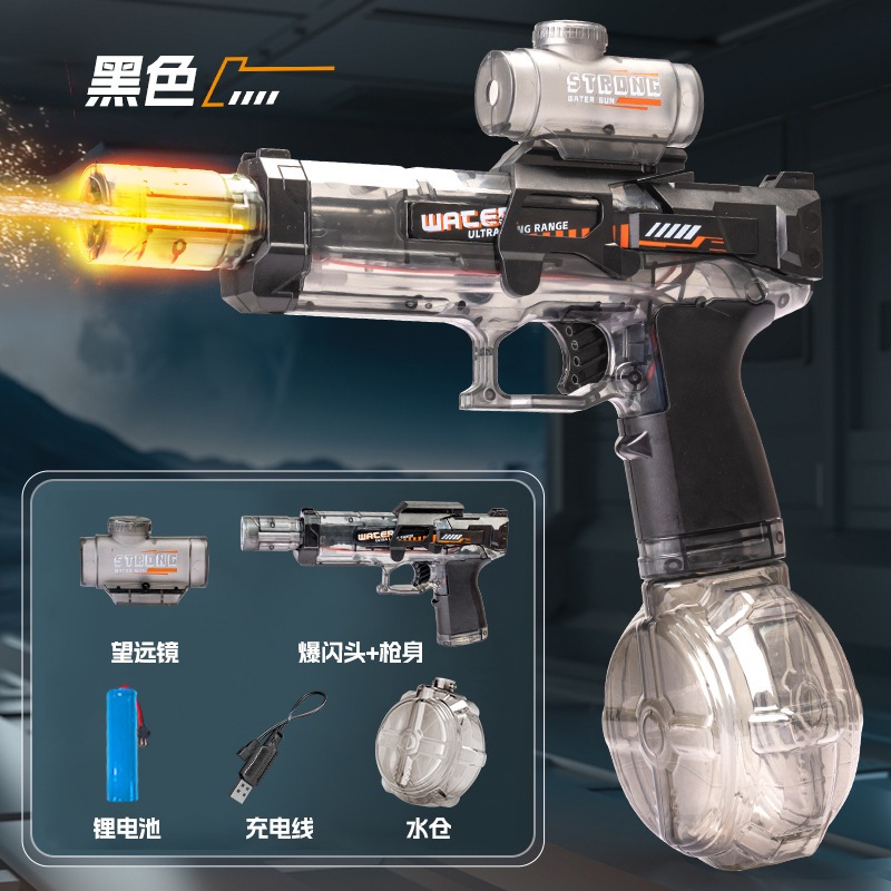 【速達!】UZIラットサイズ電動連発水銃遠射程火光噴霧効果大容量子供玩具23